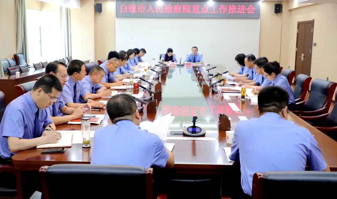9月1日,白银市检察院召开重点工作推进会,盘点梳理前8个月检察工作情况,安排部署后一阶段重点工作。市检察院党组书记、检察长周永祥主持会议并讲话,党组成员、机关各部门负责人参加会议。