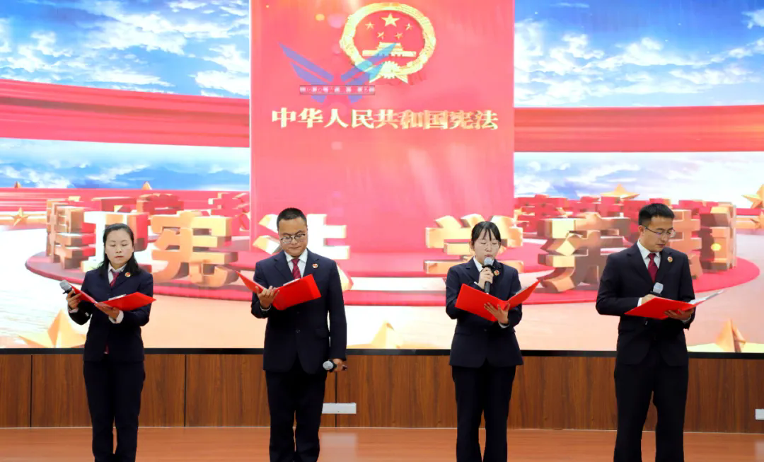 围绕宪法基本原则、公民权利义务、国家机构职能等核心内容展开紧张活泼的知识竞答。干警们踊跃抢答、对答如流,现场气氛热烈。这一环节有效检验了日常学习成果,将观念上的尊崇转化为理论上的清醒与行动上的自觉,营造了宪法宣传的浓厚氛围。